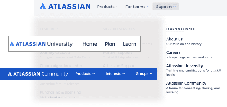 Users can level up their skills in Atlassian's productivity tools by utilizing Community and University. They can ask questions, share expertise, and participate in trainings and certifications. Our goal was to unite the two systems to make it easier than ever to learn and grow with Atlassian.